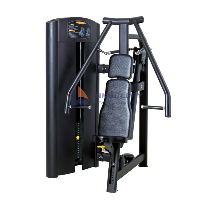 सीट को इस प्रकार समायोजित करें कि हैंडल ऊपरी छाती के साथ संरेखित हो जाएं। उचित वजन निर्धारित करें, सिर, पीठ के ऊपरी हिस्से और कूल्हों को पीठ के बल टिकाकर मजबूती से बैठें और कोर को संलग्न करें। अपनी छाती ऊपर उठाएं और आंखें आगे की ओर रखें। हैंडल को पकड़ें, गहरी सांस लें और सांस छोड़ते हुए छाती को सक्रिय करते हुए आगे की ओर धकेलें। कोहनियों को पूरी तरह से बंद न करें। शीर्ष पर कुछ देर रुकें, फिर सांस भरते हुए धीरे-धीरे वापस लौट आएं। नियंत्रित रूप से इस क्रिया को दोहराएँ।