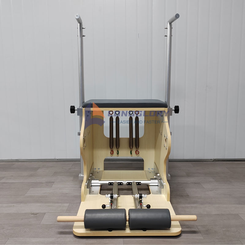 3. पिलेट्स चेयर: डिजाइन सार: एक पैडल, एडजस्टेबल स्प्रिंग्स, नॉन-स्लिप हैंडल और एक आरामदायक सीट को एक चतुर डिजाइन के साथ एकीकृत करता है जो कार्यक्षमता और पोर्टेबिलिटी को संतुलित करता है। प्रशिक्षण फोकस: एकतरफा अंग समन्वय और गतिशील संतुलन को मजबूत करने, कूल्हे और पैर की रेखाओं को सटीक रूप से तराशने और कोर की मांसपेशियों को गहराई से सक्रिय करने पर जोर देता है। उपयोग की मुख्य विशेषताएं: कॉम्पैक्ट और जगह बचाने वाला, विशेष रूप से घरेलू सेटिंग के लिए उपयुक्त; लचीला समायोज्य प्रतिरोध विभिन्न प्रशिक्षण चरणों के अनुकूल होता है। क्लासिक मूवमेंट: स्टेप-अप प्रेस (एयर कुशन) और सिंगल-लेग बैलेंस ट्रेनिंग से निचले अंगों की ताकत और संतुलन नियंत्रण में सुधार होता है।